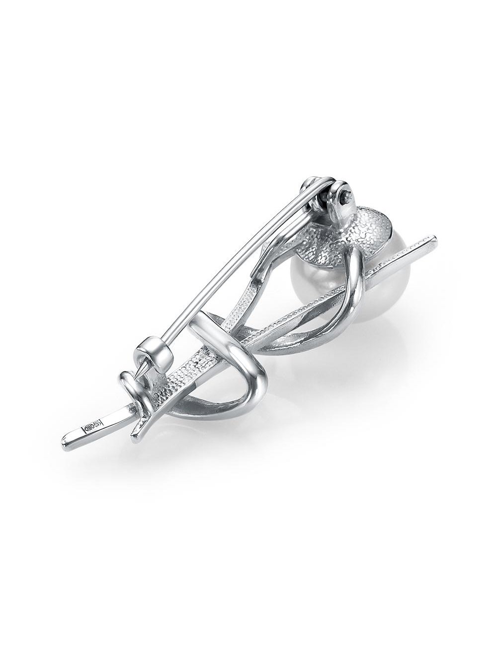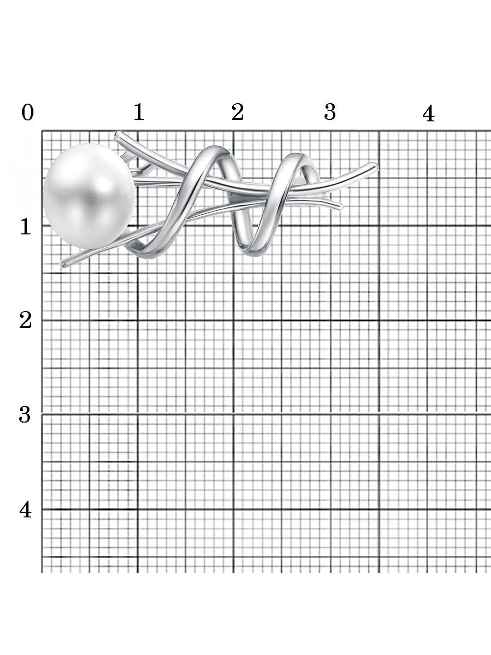 Брошь бижутерия, покрытие - платинирование, вставка - культивированный жемчуг