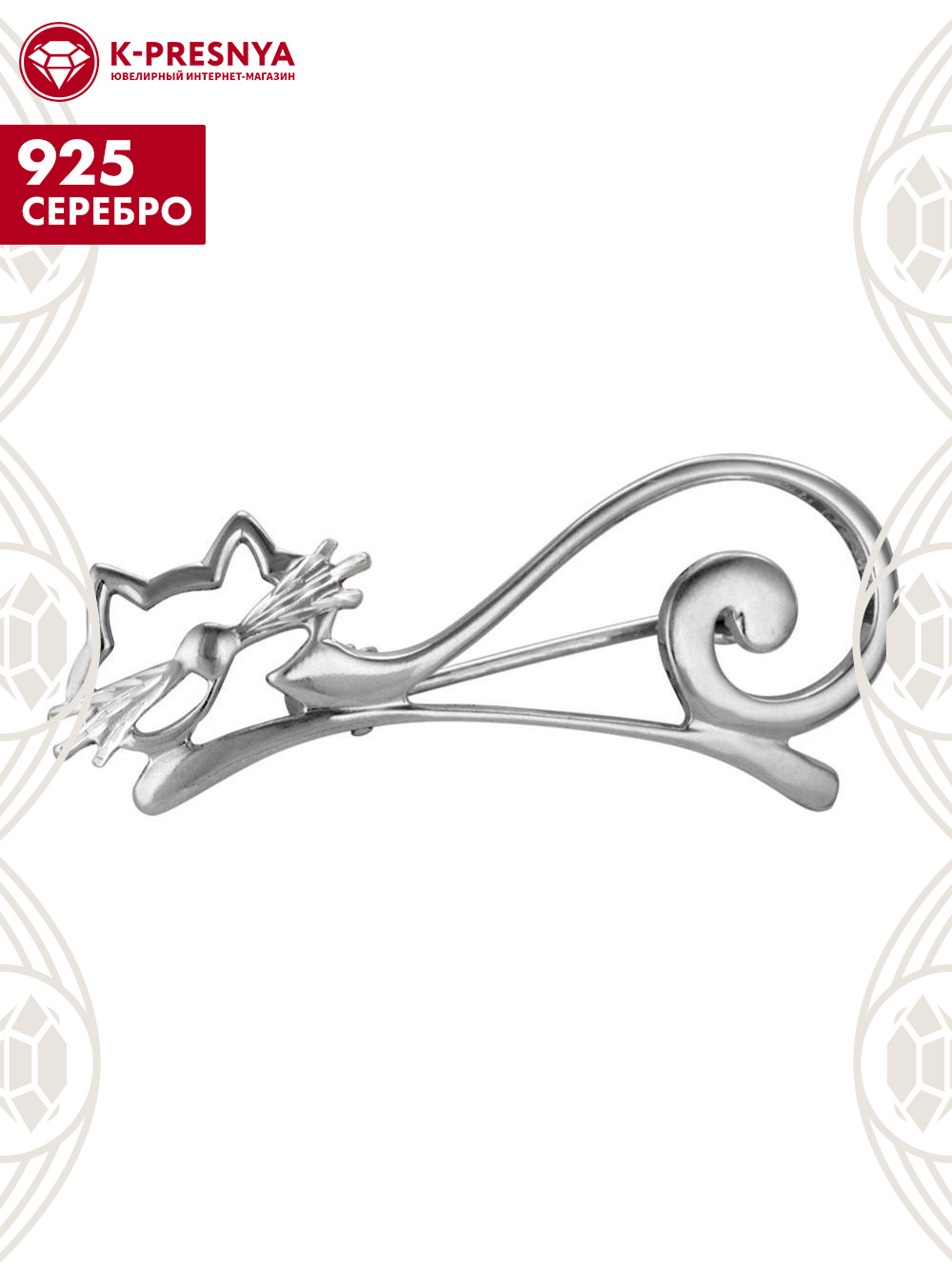 Брошь серебро 925 пробы, покрытие - оксидирование, отделка - алмазная грань, без вставок