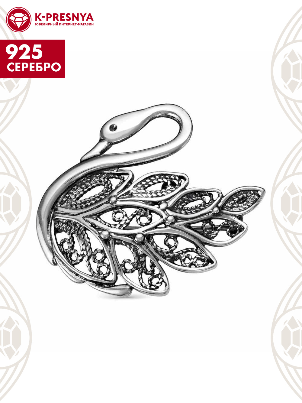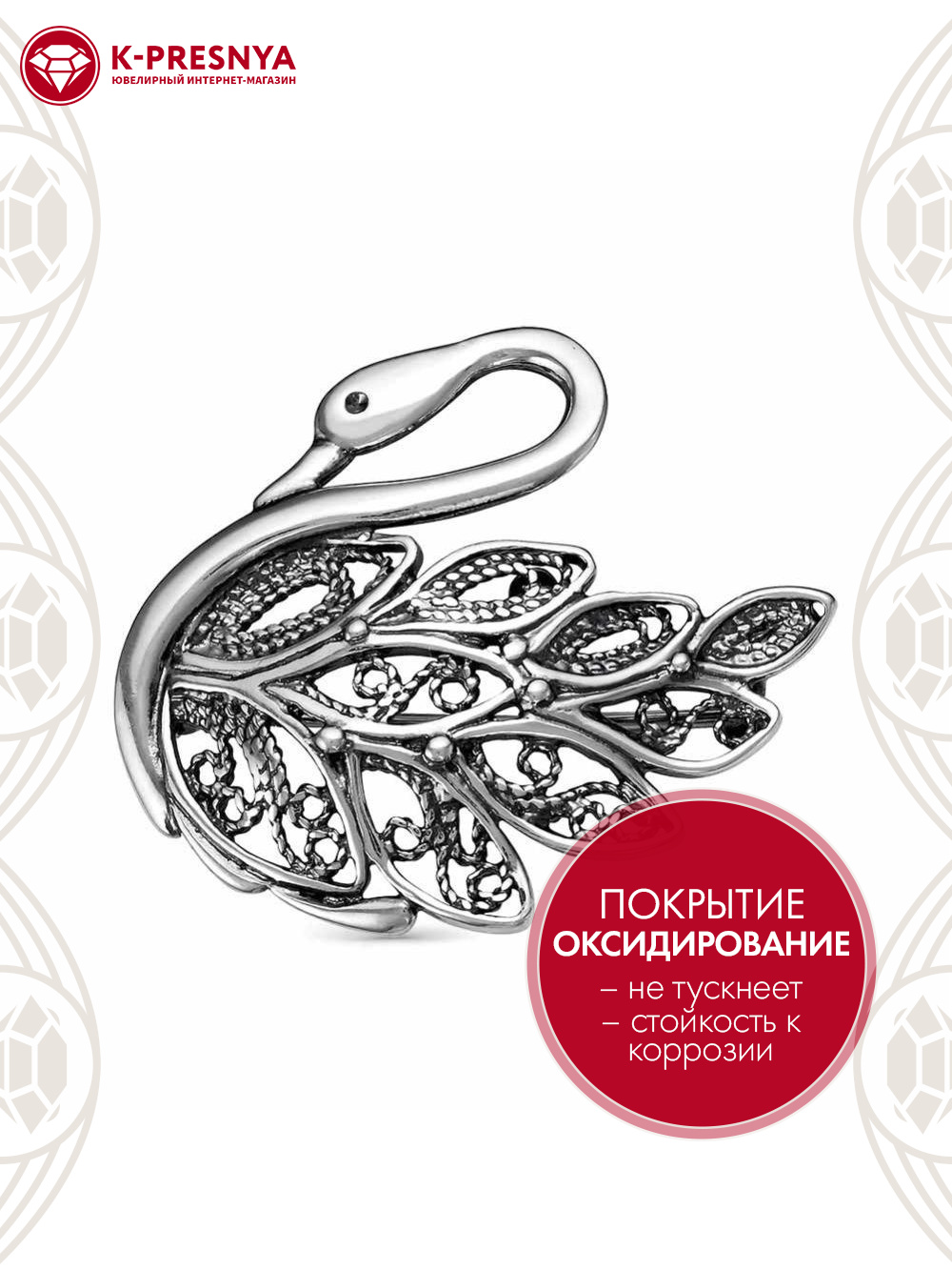 Брошь серебро 925 пробы, покрытие - оксидирование, без вставок