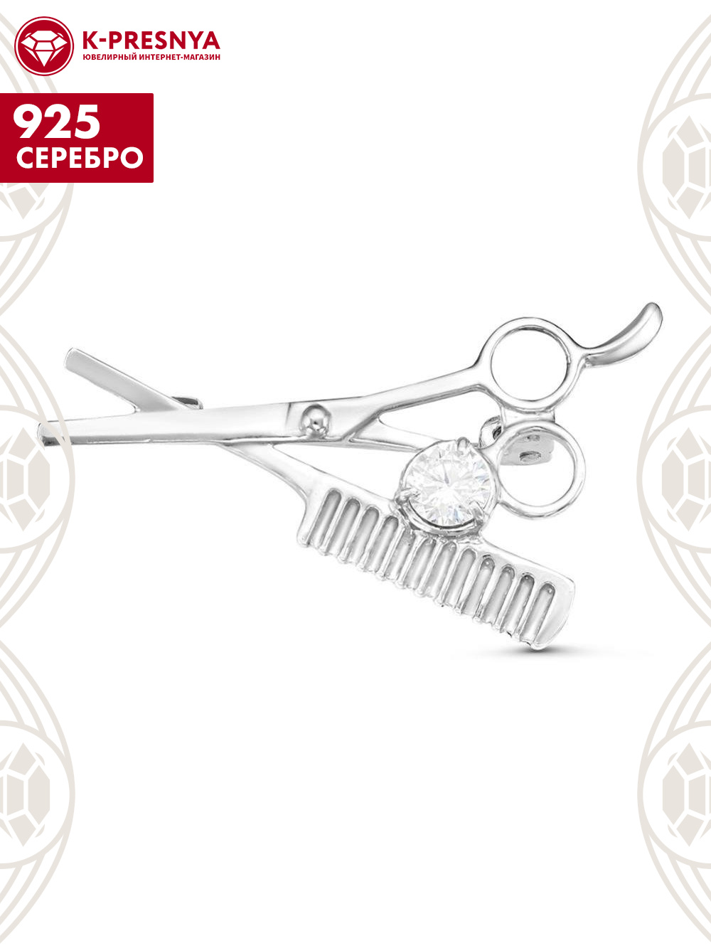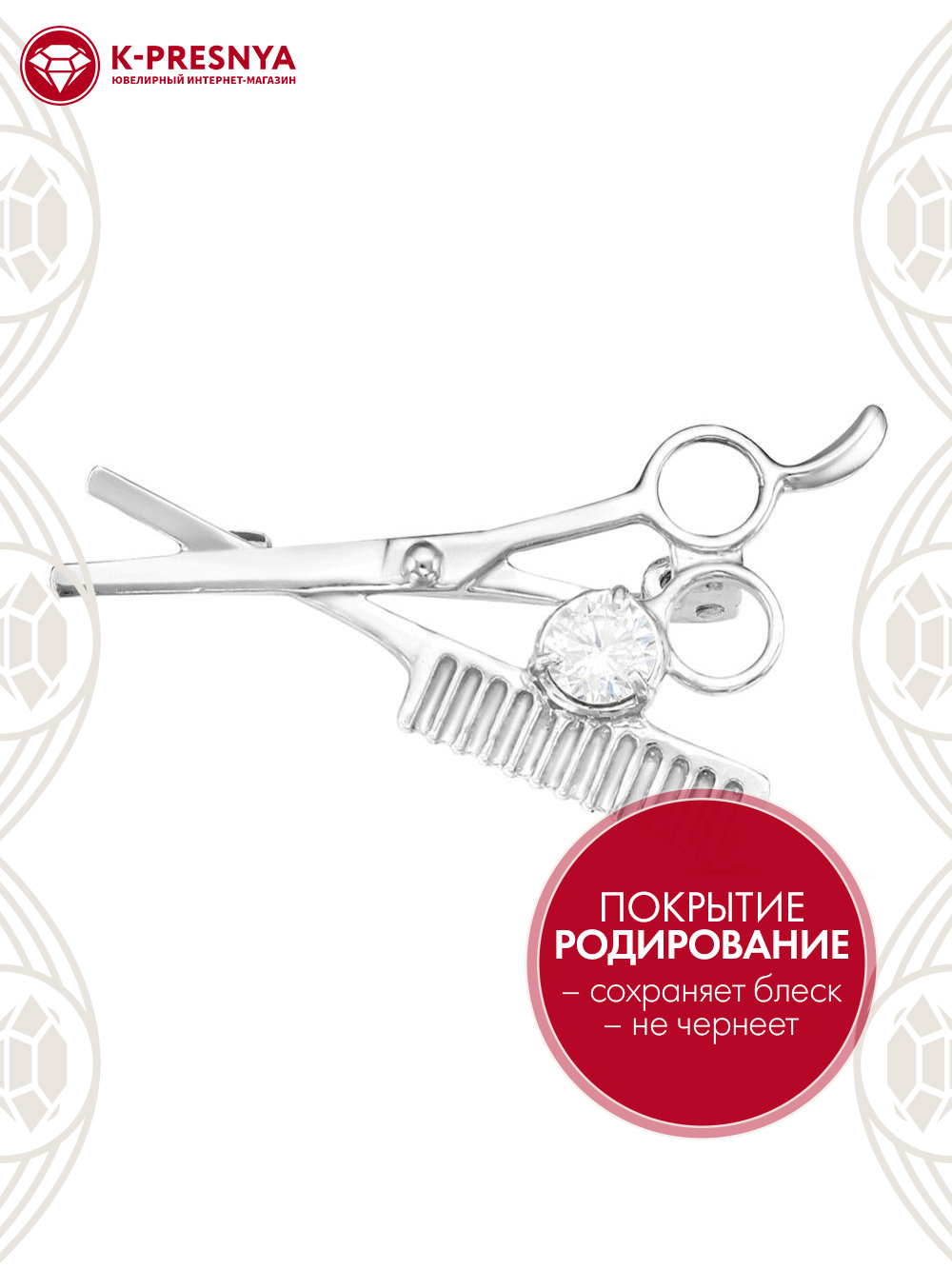 Брошь серебро 925 пробы, покрытие - родирование, вставка - фианит (недрагоценный камень)