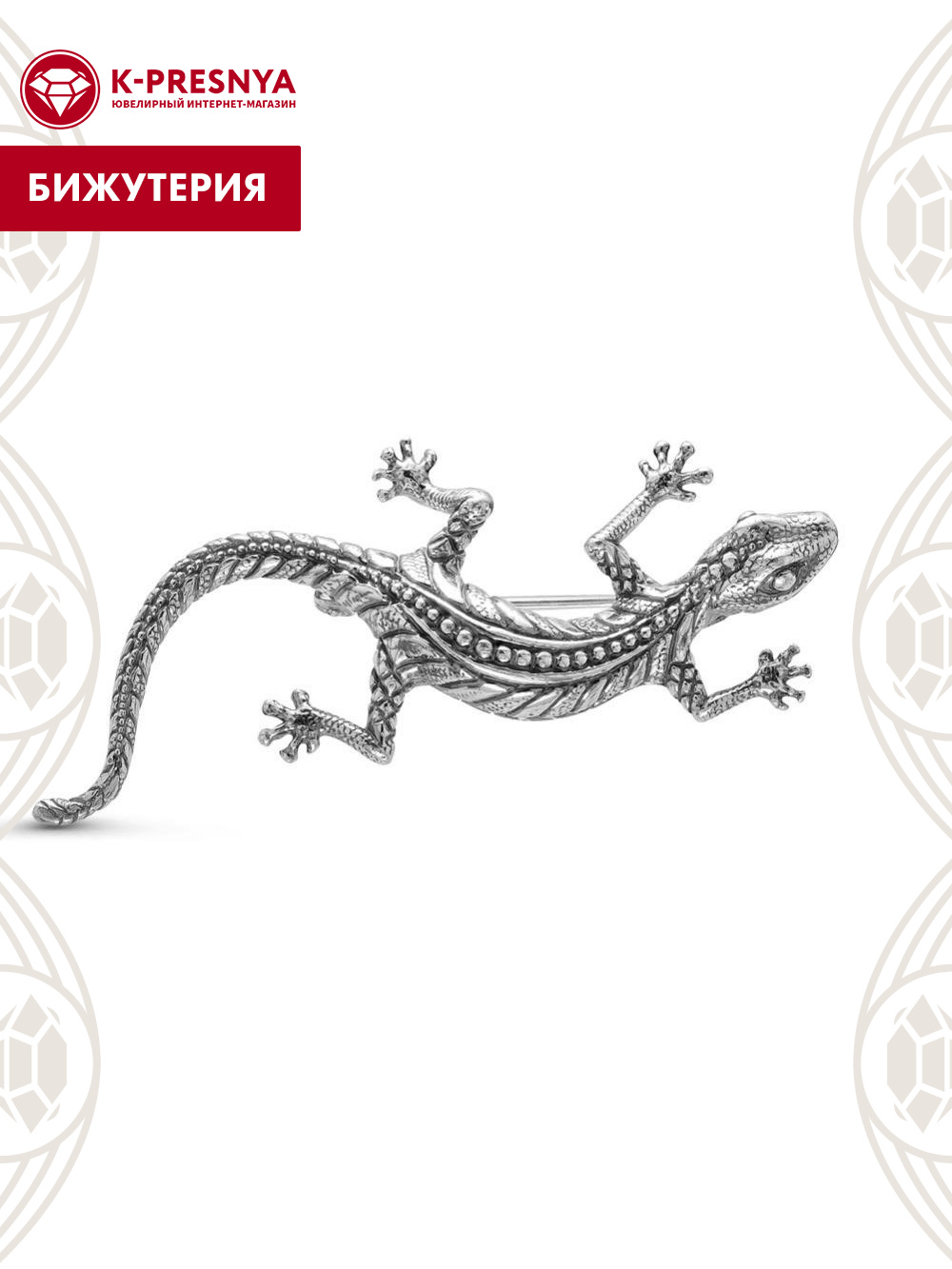 Брошь бижутерия, покрытие - серебрение с оксидированием, без вставок
