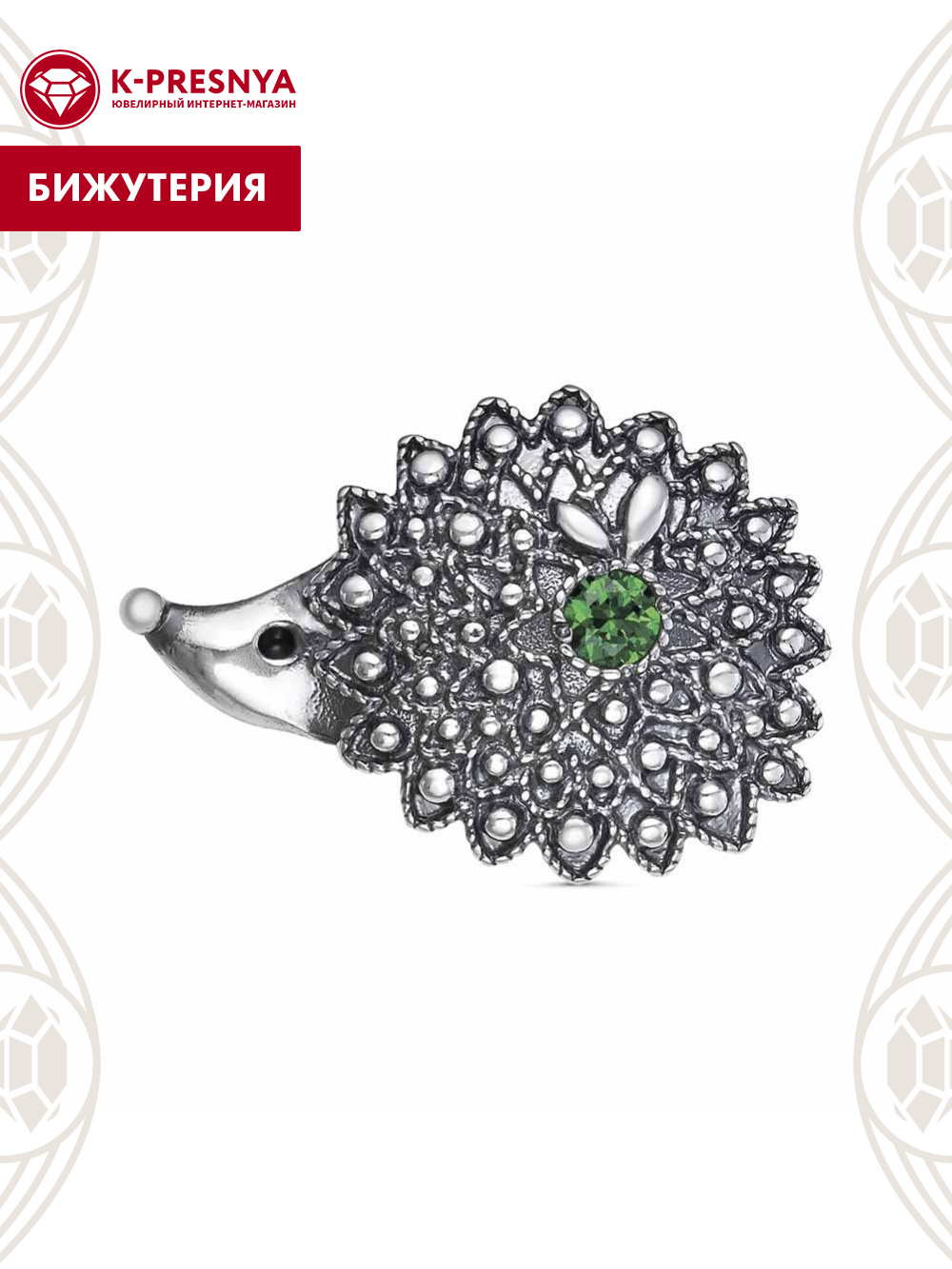 Брошь бижутерия, покрытие - серебрение с оксидированием, отделка - эмаль, вставка - искусственная шпинель