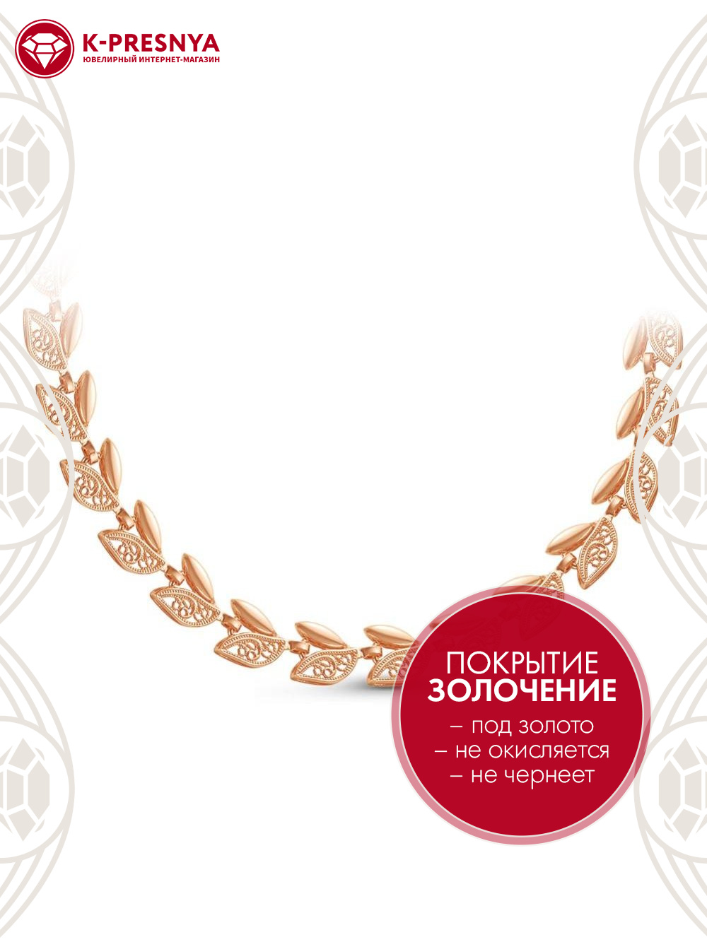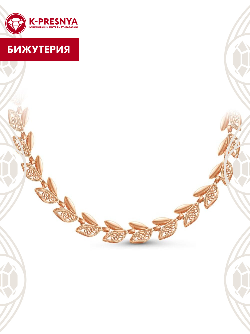 Колье бижутерия, покрытие - золочение, без вставок