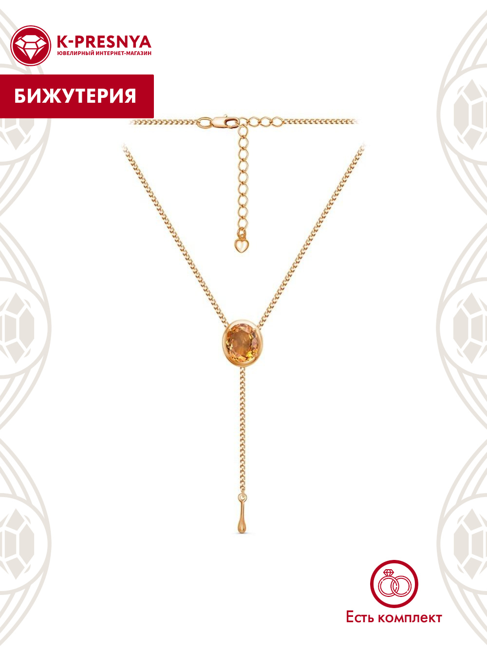 Колье бижутерия, покрытие - золочение, вставка - искусственный султанит