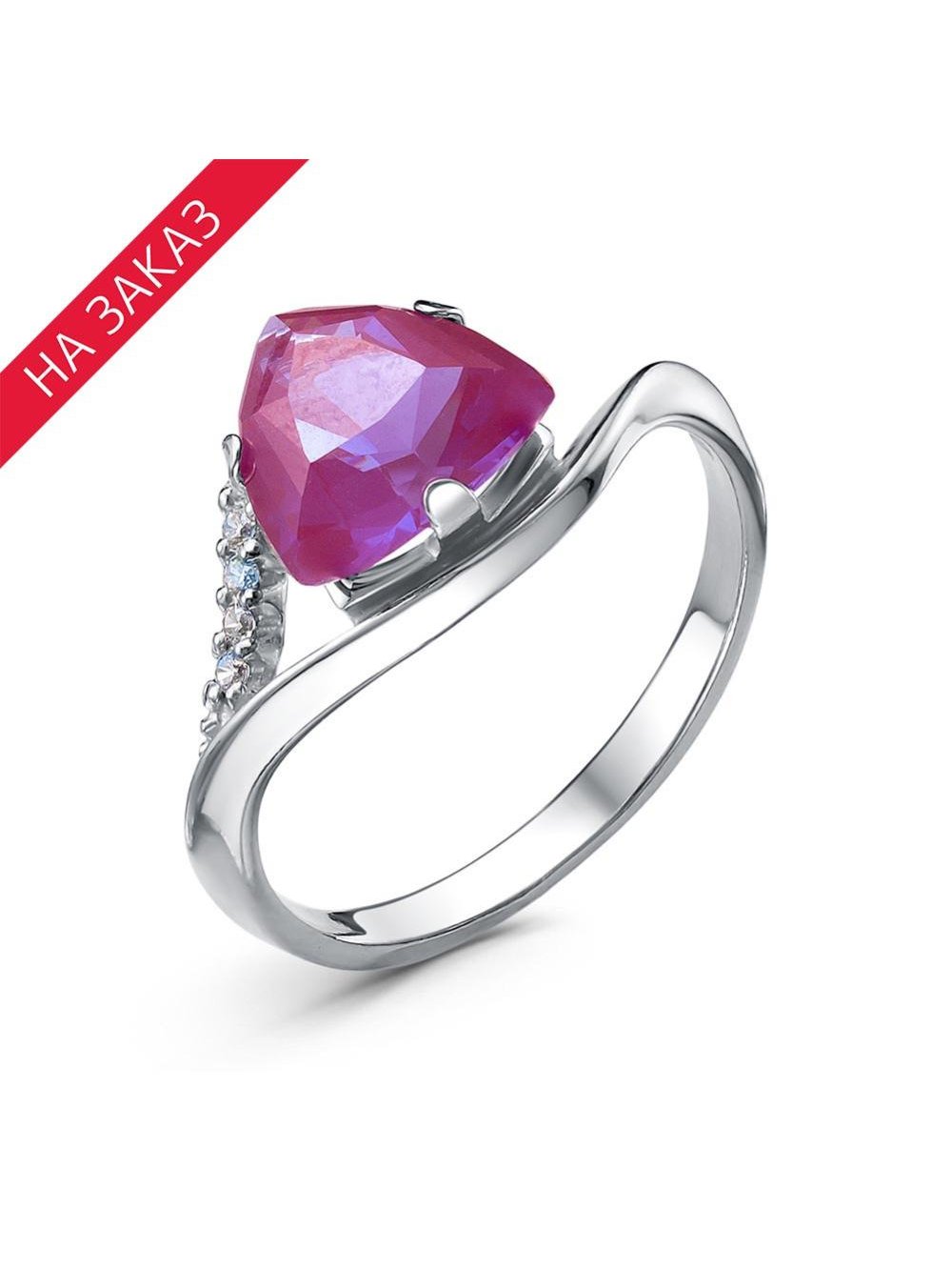 Кольцо серебро 925 пробы, покрытие - родирование, вставка - ситалл собственной огранки, фианит (недрагоценный камень)