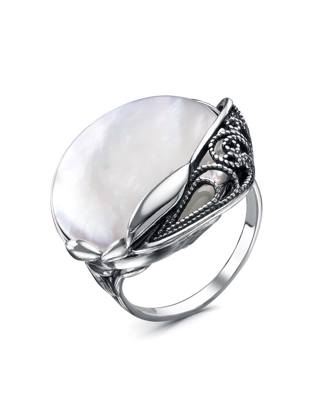 Кольцо бижутерия, покрытие - серебрение с оксидированием, вставка - перламутр
