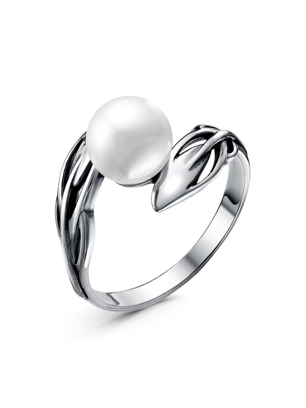 Кольцо серебро 925 пробы, покрытие - оксидирование, вставка - имитация жемчуга