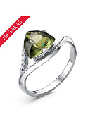 Кольцо серебро 925 пробы, покрытие - родирование, вставка - ситалл собственной огранки, фианит (недрагоценный камень)