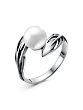 Кольцо бижутерия, покрытие - серебрение с оксидированием, вставка - имитация жемчуга