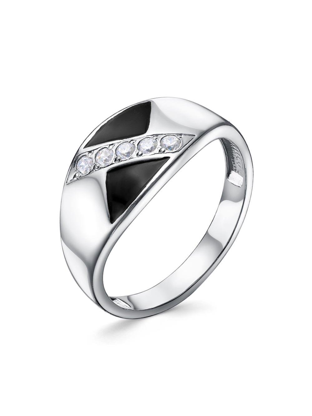 Кольцо серебро 925 пробы, покрытие - платинирование, отделка - эмаль, вставка - фианит (недрагоценный камень)
