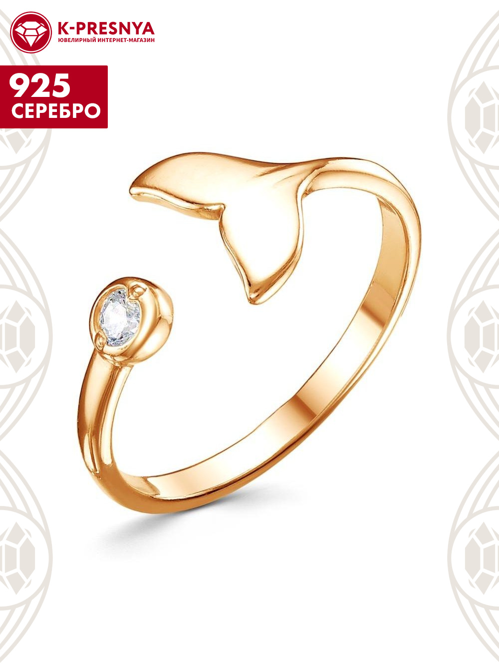 Кольцо серебро 925 пробы, покрытие - золочение, вставка - фианит (недрагоценный камень)