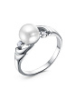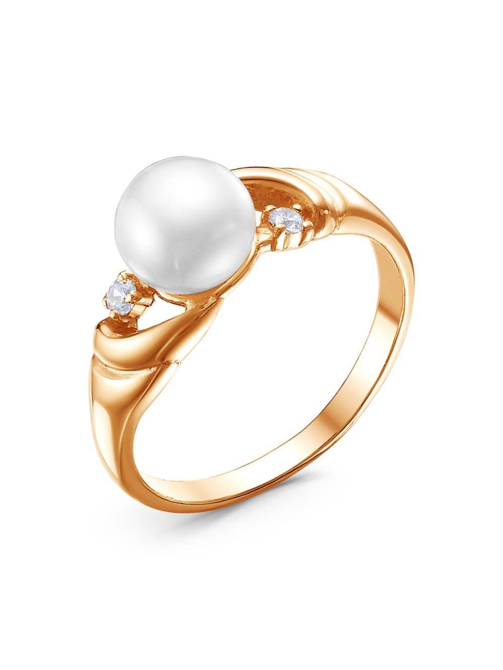 Кольцо серебро 925 пробы, покрытие - золочение, вставка - культивированный жемчуг, фианит (недрагоценный камень)