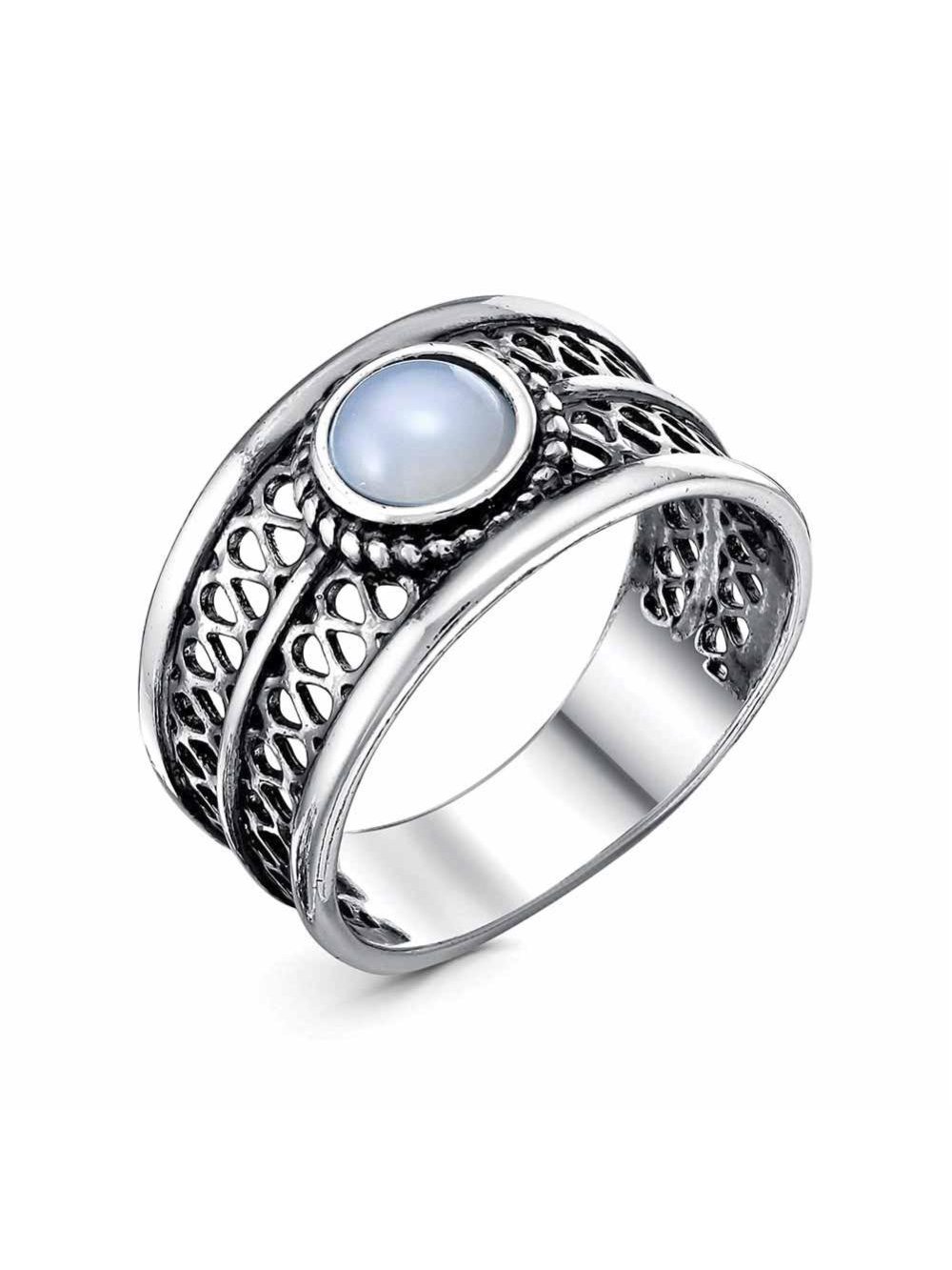 Кольцо бижутерия, покрытие - серебрение с оксидированием, вставка - искусственный агат белый