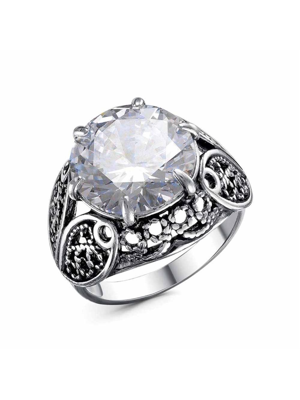 Кольцо серебро 925 пробы, покрытие - оксидирование, вставка - фианит (недрагоценный камень)
