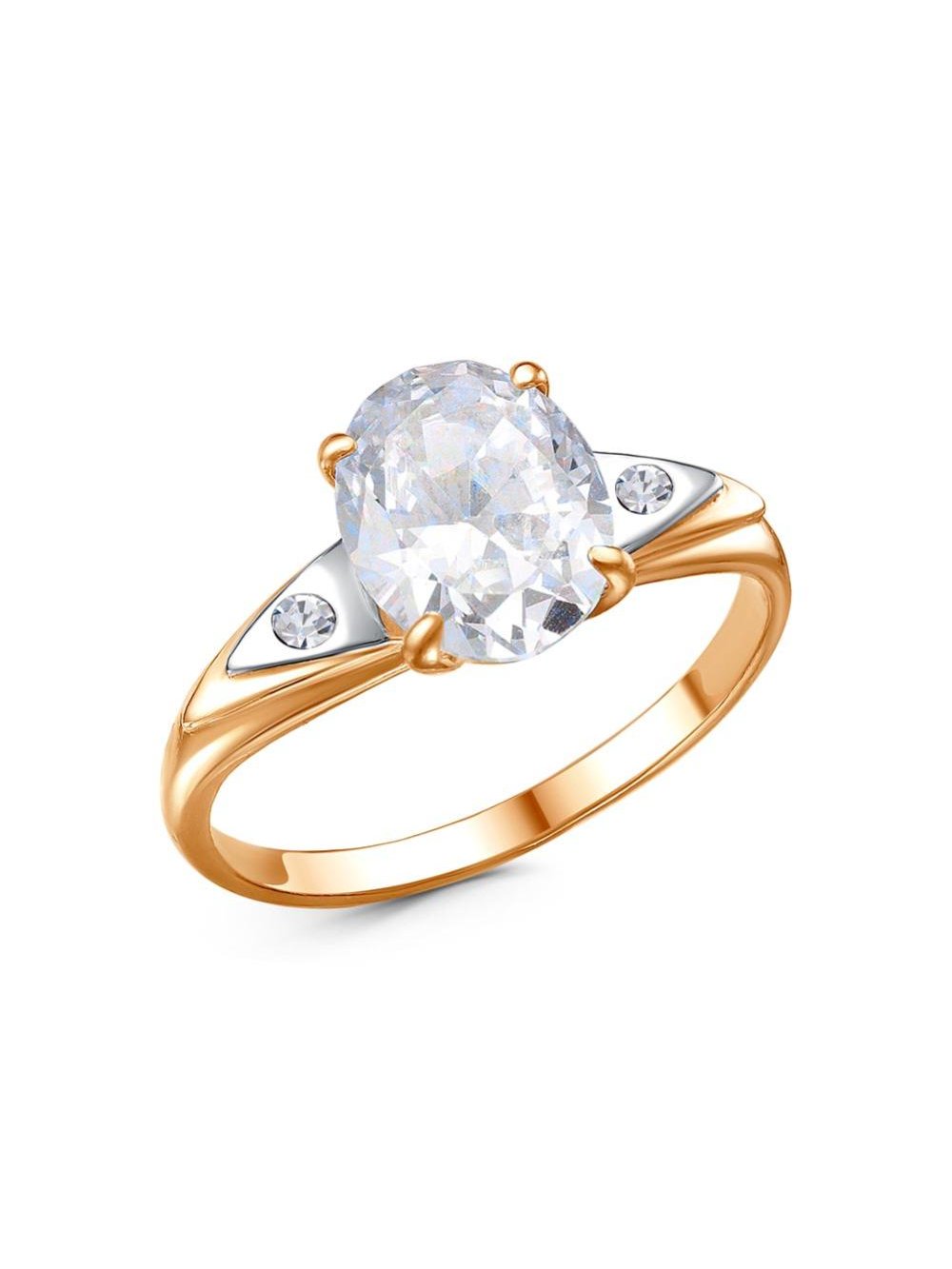 Кольцо бижутерия, покрытие - золочение, выборочное родирование