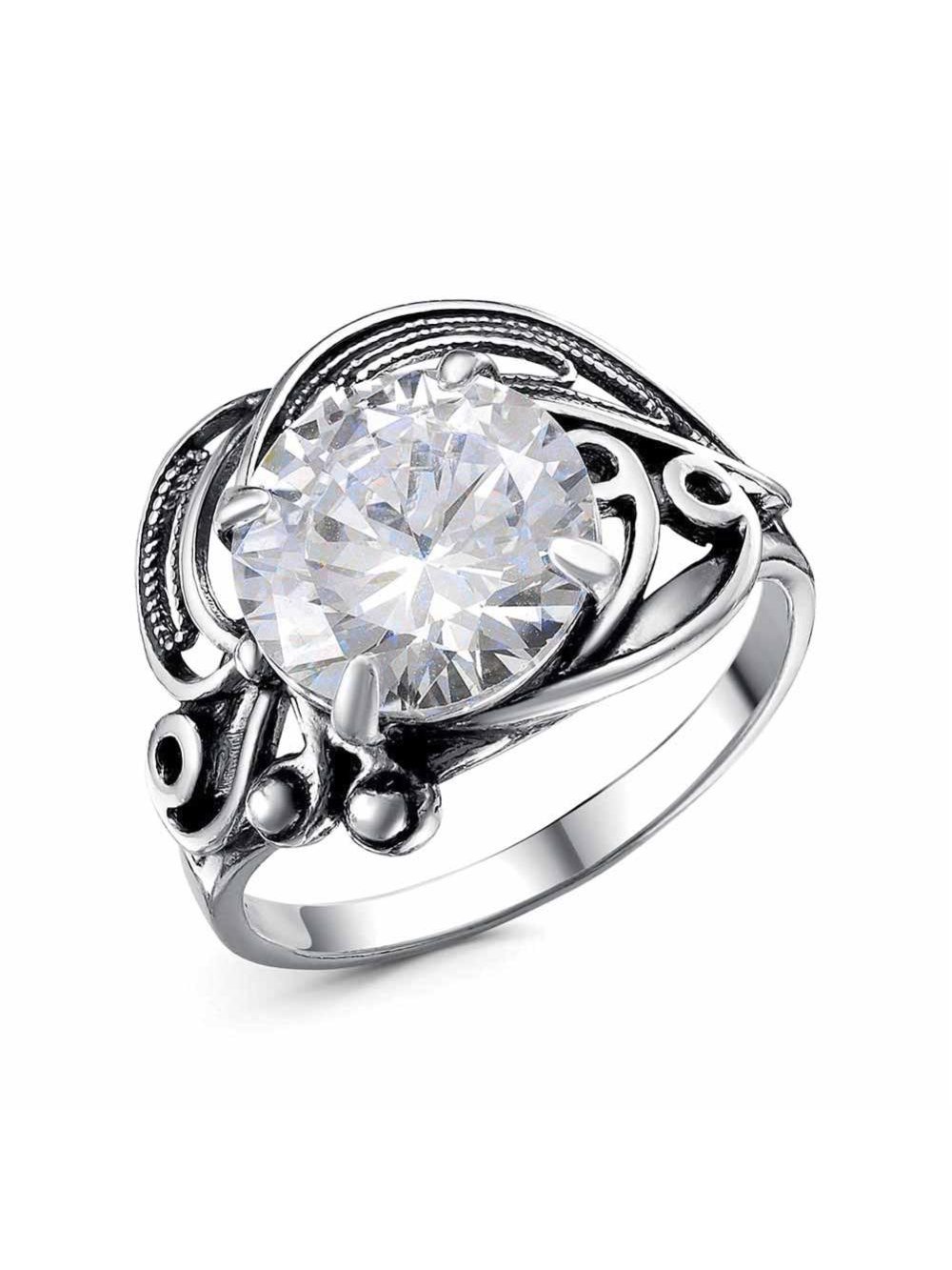 Кольцо серебро 925 пробы, покрытие - оксидирование, вставка - фианит (недрагоценный камень)