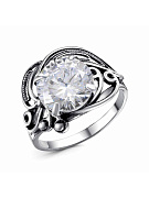 Кольцо бижутерия, покрытие - серебрение с оксидированием, вставка - фианит (недрагоценный камень)