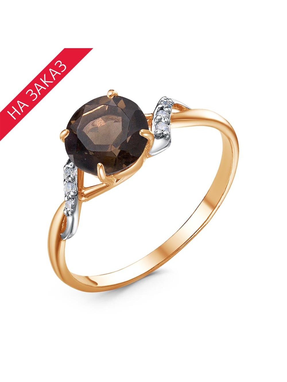 Кольцо серебро 925 пробы, покрытие - золочение, выборочное родирование, вставка - дымчатый кварц, фианит (недрагоценный камень)