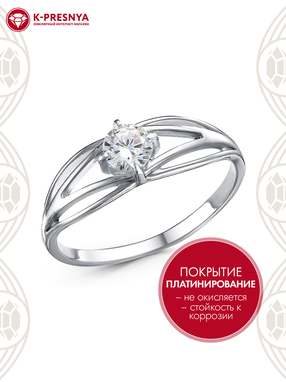 Кольцо бижутерия, покрытие - платинирование, вставка - фианит (недрагоценный камень)