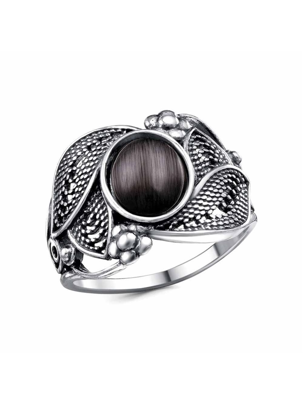 Кольцо серебро 925 пробы, покрытие - оксидирование, вставка - искусственный кошачий глаз