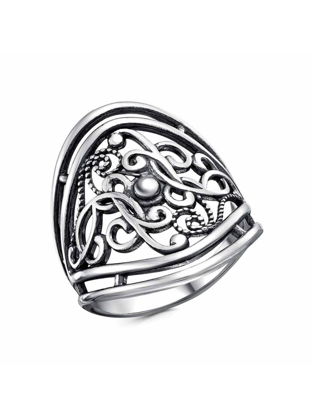 Кольцо серебро 925 пробы, покрытие - оксидирование, без вставок
