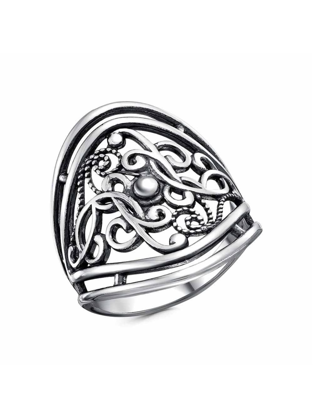 Кольцо бижутерия, покрытие - серебрение с оксидированием, без вставок
