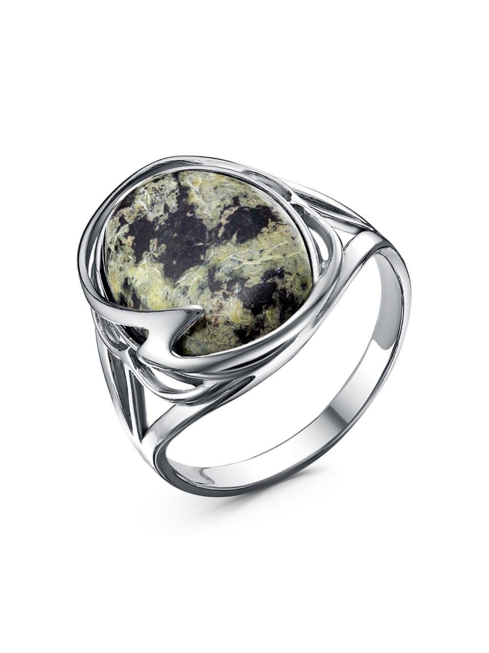 Кольцо бижутерия, покрытие - серебрение с оксидированием, вставка - змеевик