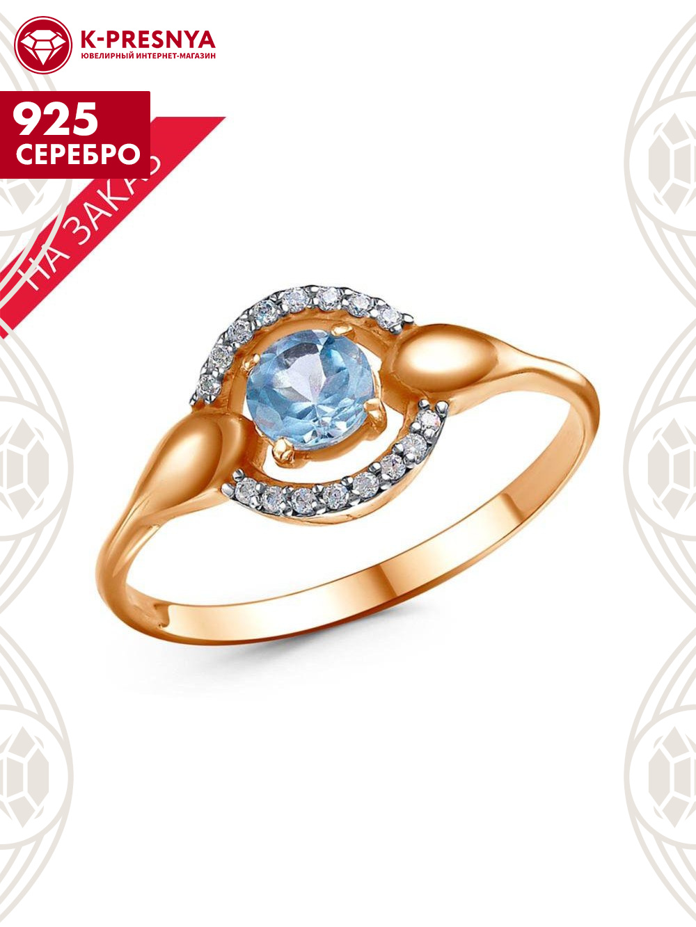 Кольцо серебро 925 пробы, покрытие - золочение, выборочное родирование