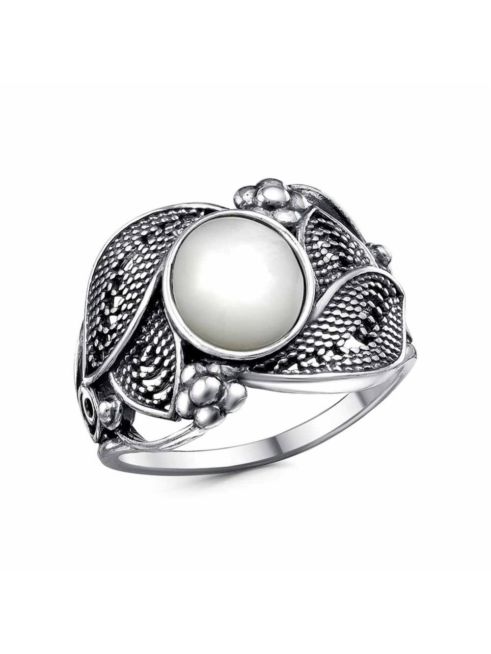 Кольцо бижутерия, покрытие - серебрение с оксидированием, вставка - перламутр