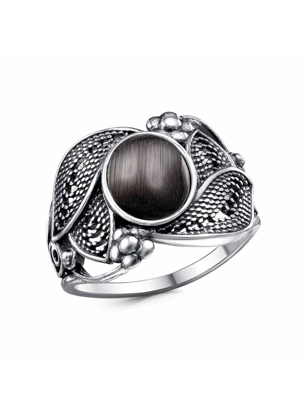 Кольцо бижутерия, покрытие - серебрение с оксидированием, вставка - искусственный кошачий глаз