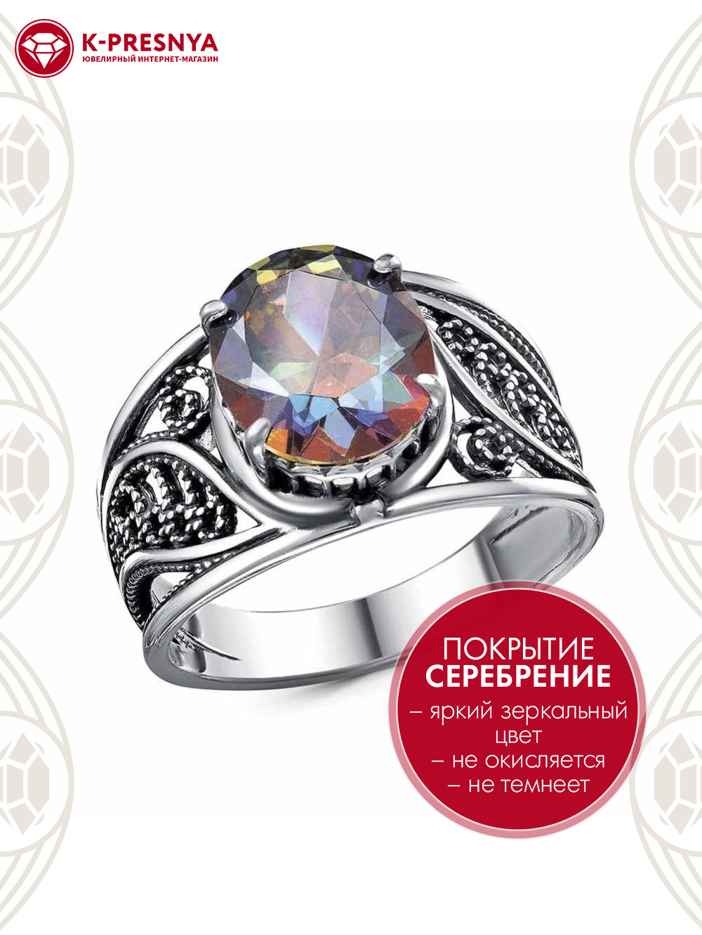 Кольцо бижутерия, покрытие - серебрение с оксидированием, вставка - фианит (недрагоценный камень)