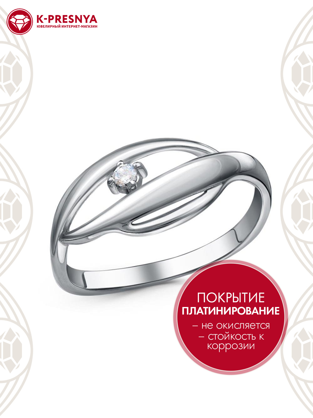 Кольцо бижутерия, покрытие - платинирование, вставка - фианит (недрагоценный камень)