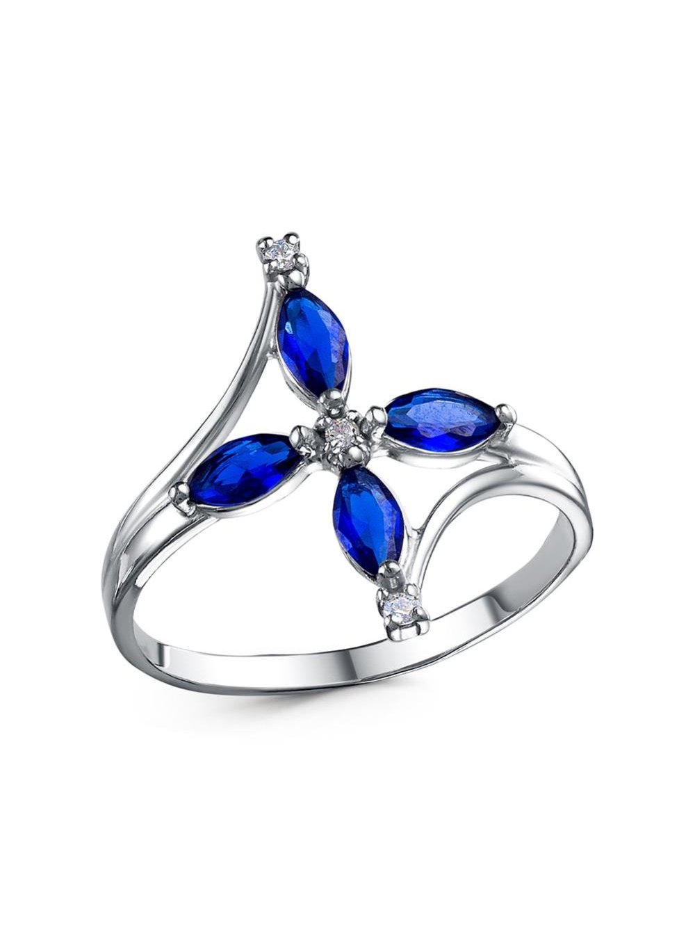 Кольцо серебро 925 пробы, покрытие - платинирование, вставка - искусственная шпинель, фианит (недрагоценный камень)