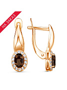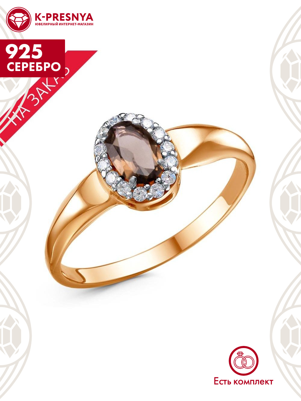 Кольцо серебро 925 пробы, покрытие - золочение, выборочное родирование, вставка - дымчатый кварц, фианит (недрагоценный камень)