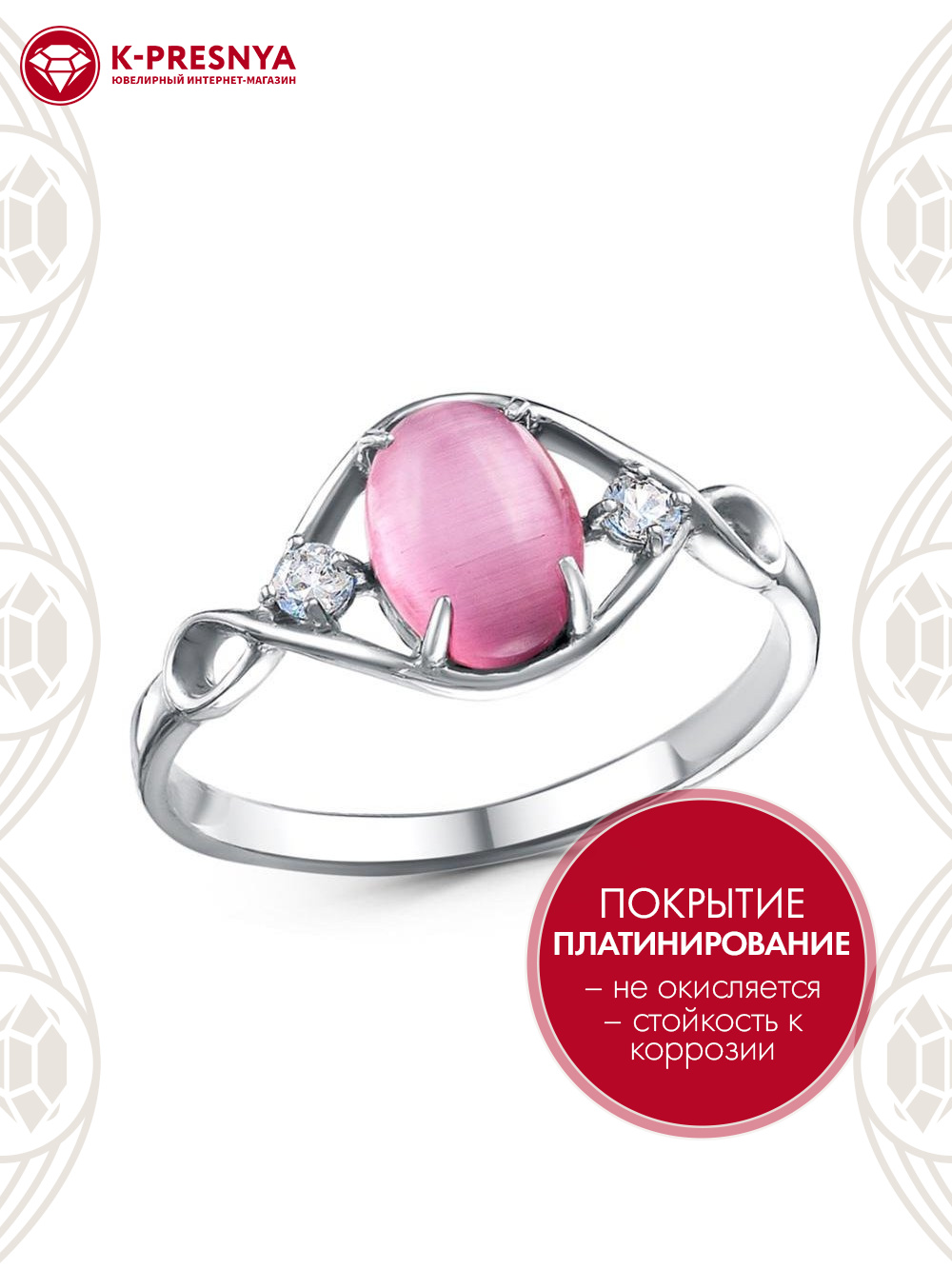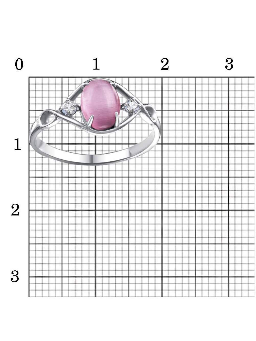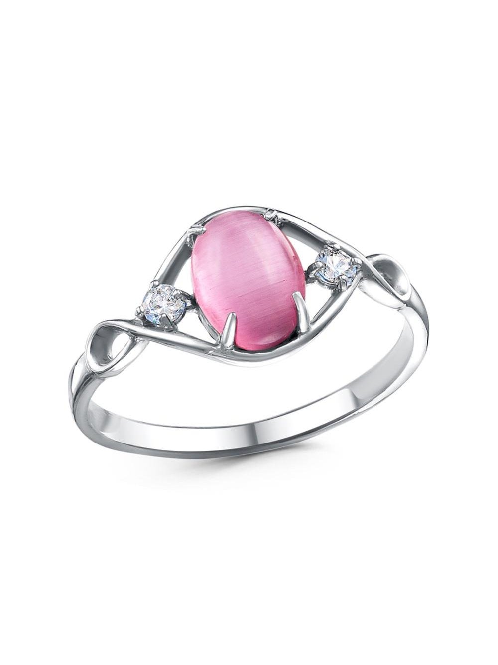 Кольцо бижутерия, покрытие - платинирование, вставка - искусственный кошачий глаз , фианит (недрагоценный камень)