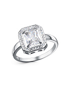Кольцо бижутерия, покрытие - платинирование, вставка - стекло ювелирное preciosa, фианит (недрагоценный камень)