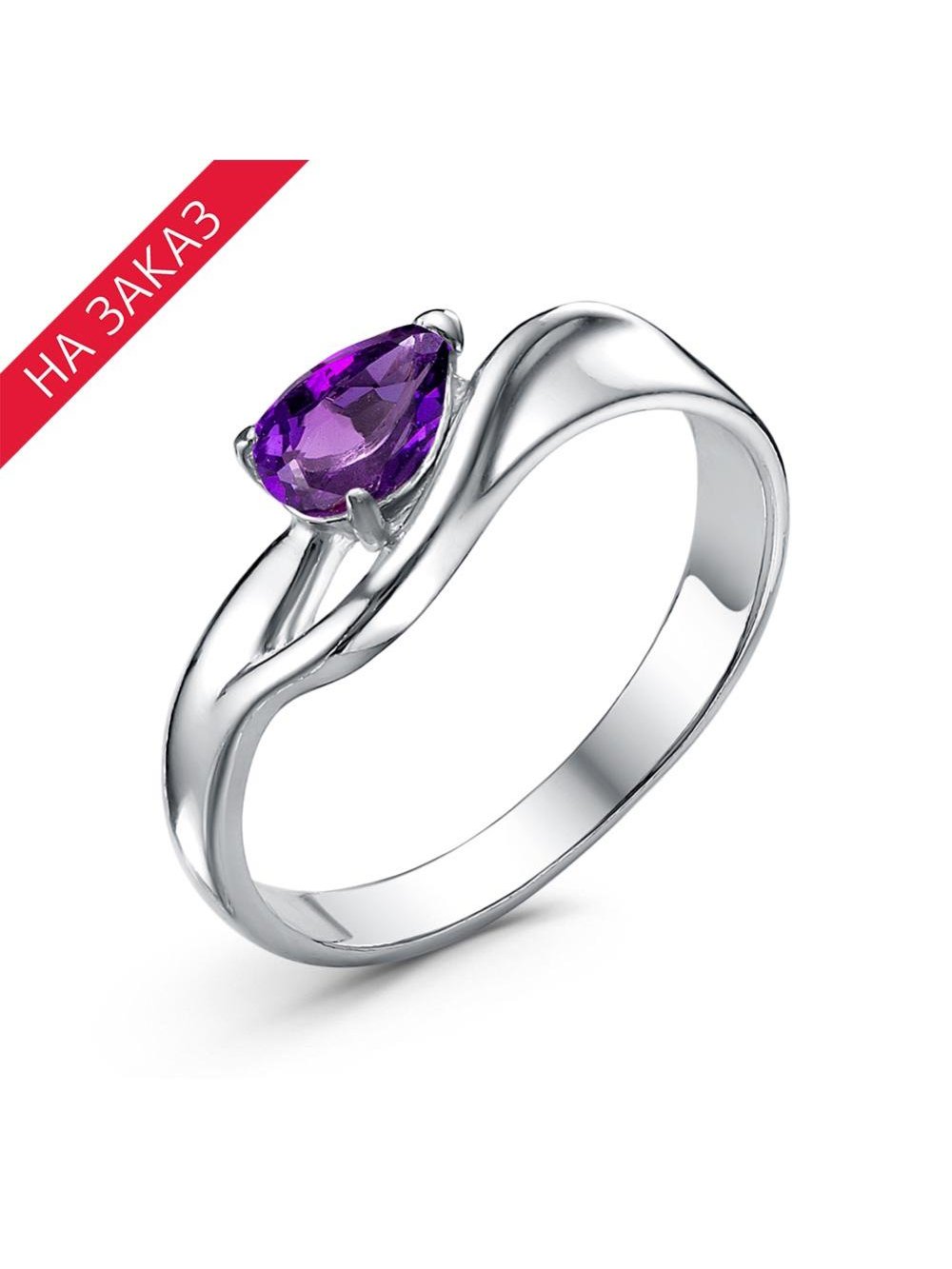 Кольцо серебро 925 пробы, покрытие - родирование, вставка - аметист (полудрагоценный камень)