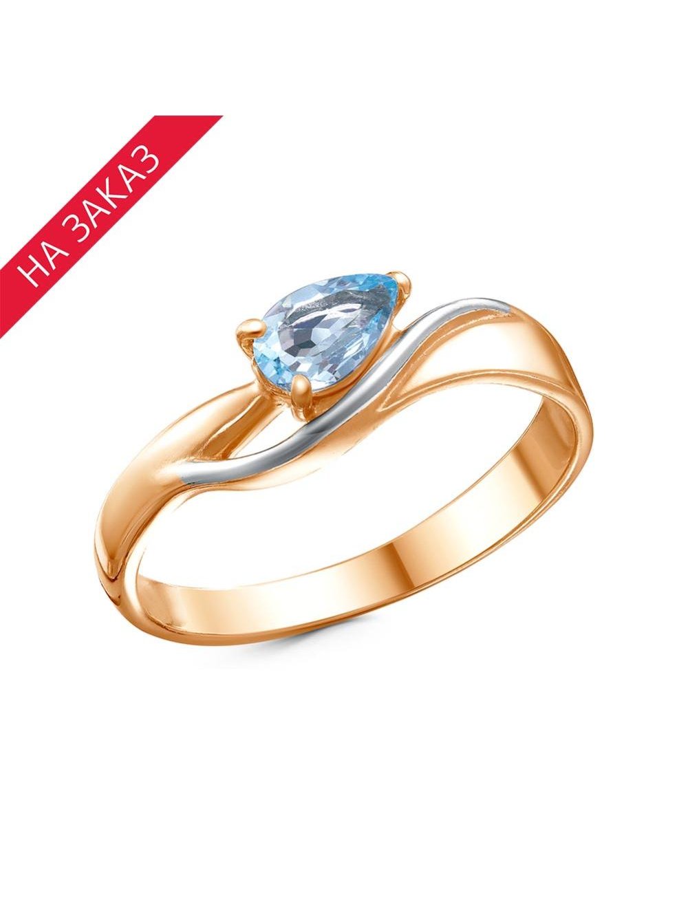 Кольцо серебро 925 пробы, покрытие - золочение, выборочное родирование, вставка - голубой топаз (полудрагоценный камень)
