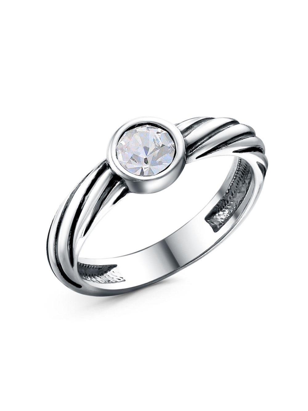 Кольцо бижутерия, покрытие - серебрение с оксидированием, вставка - стекло ювелирное preciosa