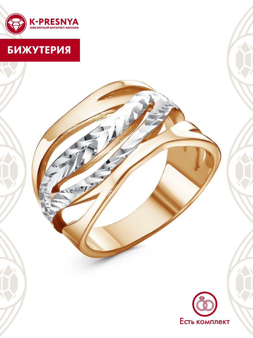 Кольцо бижутерия, покрытие - золочение, отделка - алмазная грань, без вставок