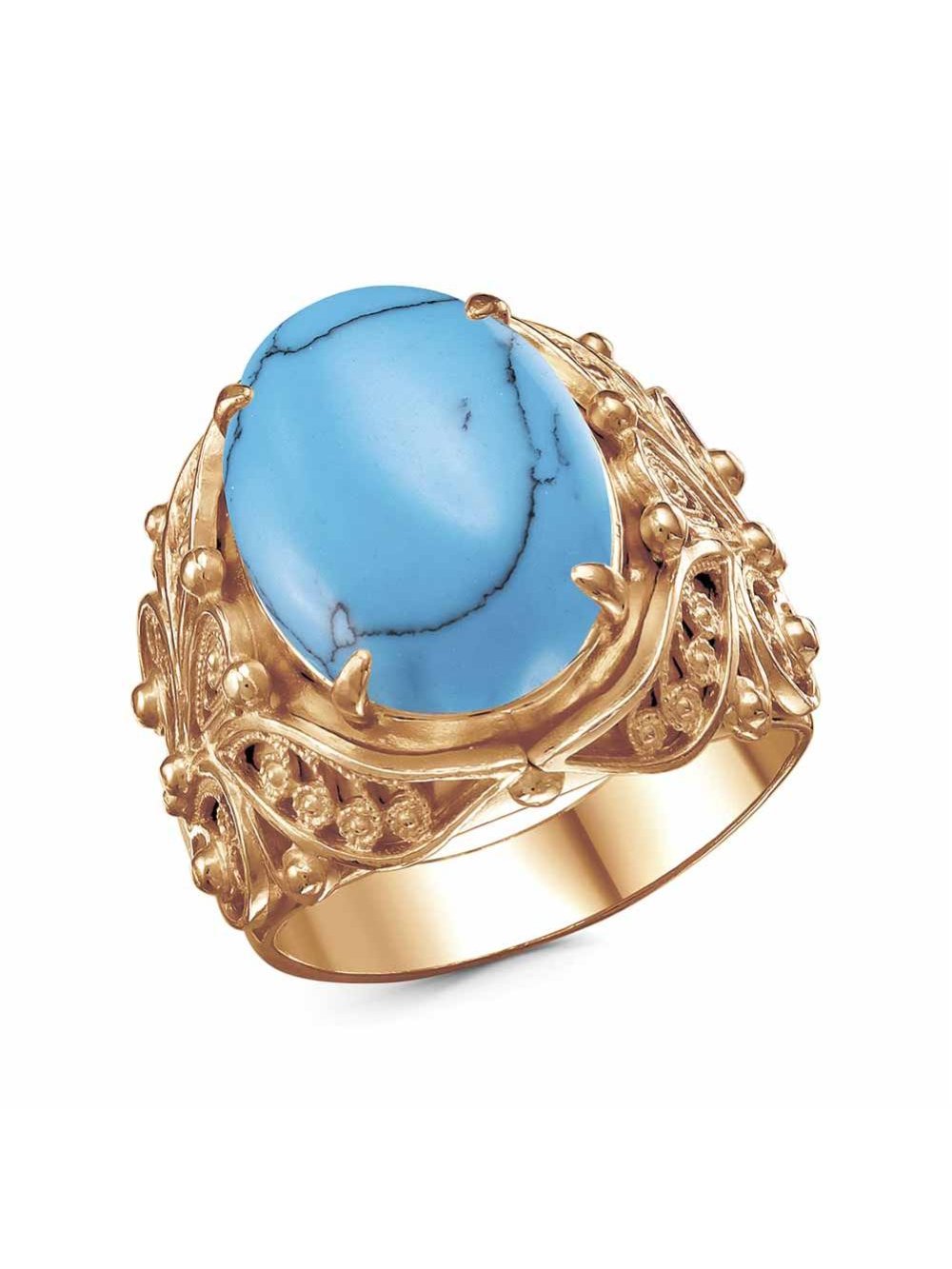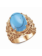 Кольцо бижутерия, покрытие - золочение, вставка - искусственная бирюза