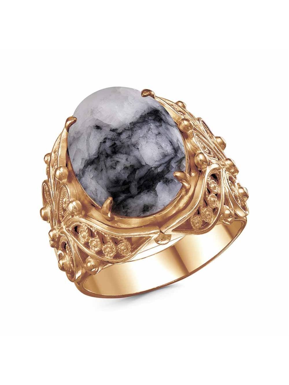 Кольцо бижутерия, покрытие - золочение, вставка - пинолит