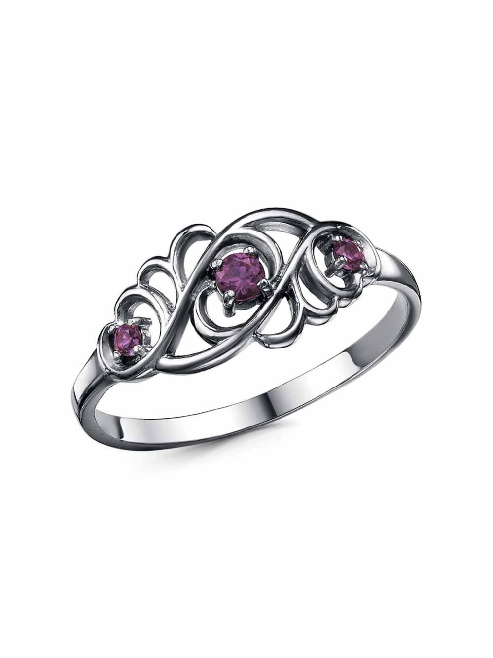 Кольцо бижутерия, покрытие - серебрение с оксидированием, вставка - синтетический корунд
