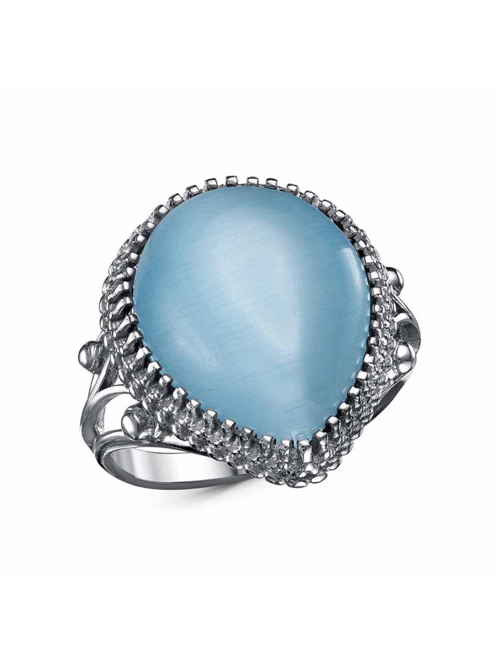 Кольцо бижутерия, покрытие - серебрение с оксидированием, вставка - искусственный кошачий глаз
