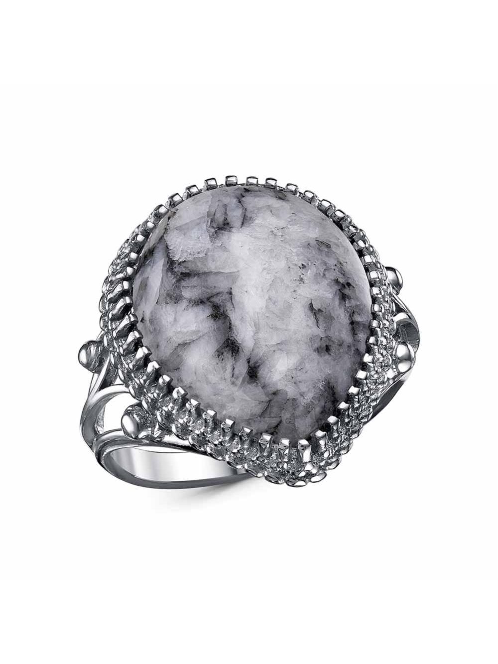 Кольцо бижутерия, покрытие - серебрение с оксидированием, вставка - пинолит