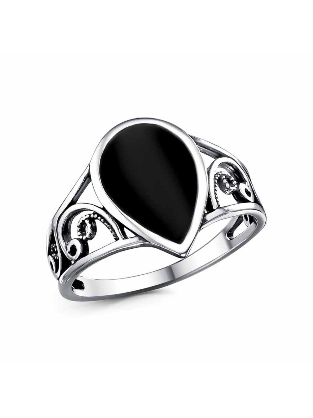 Кольцо серебро 925 пробы, покрытие - оксидирование, отделка - эмаль, без вставок