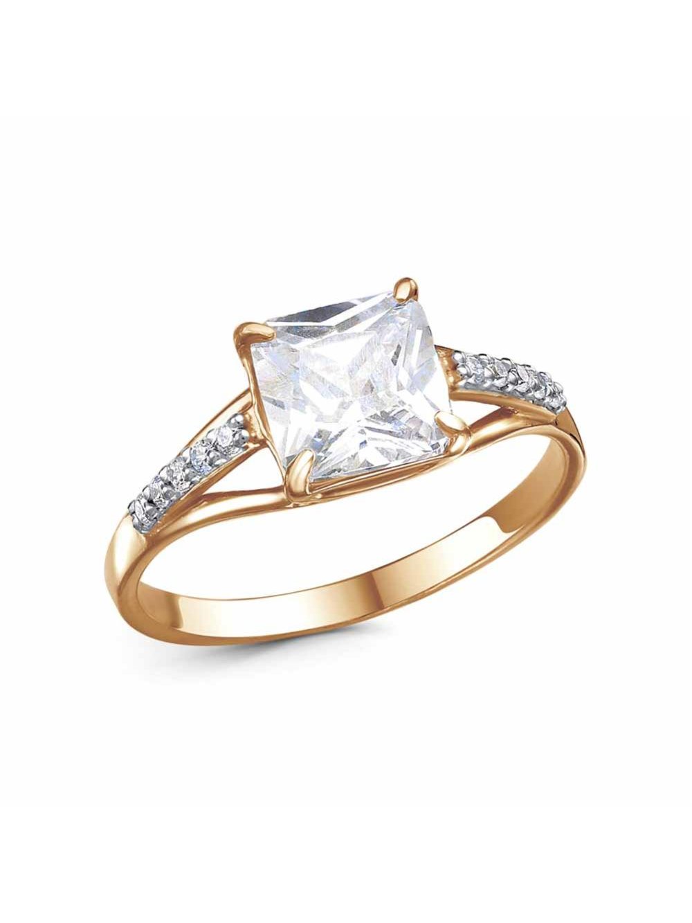 Кольцо серебро 925 пробы, покрытие - золочение, выборочное родирование, вставка - фианит (недрагоценный камень)