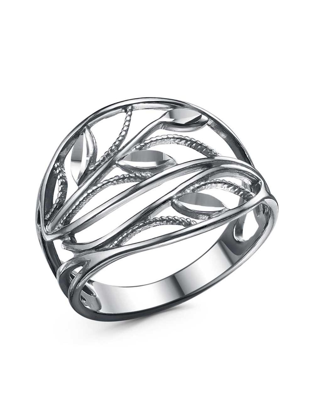 Кольцо серебро 925 пробы, покрытие - оксидирование, отделка - алмазная грань, без вставок