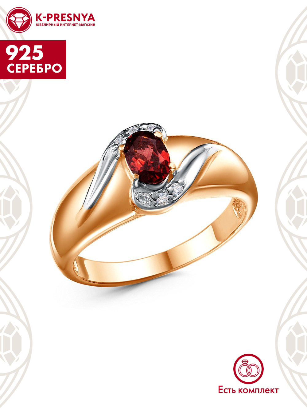 Кольцо серебро 925 пробы, покрытие - золочение, выборочное родирование