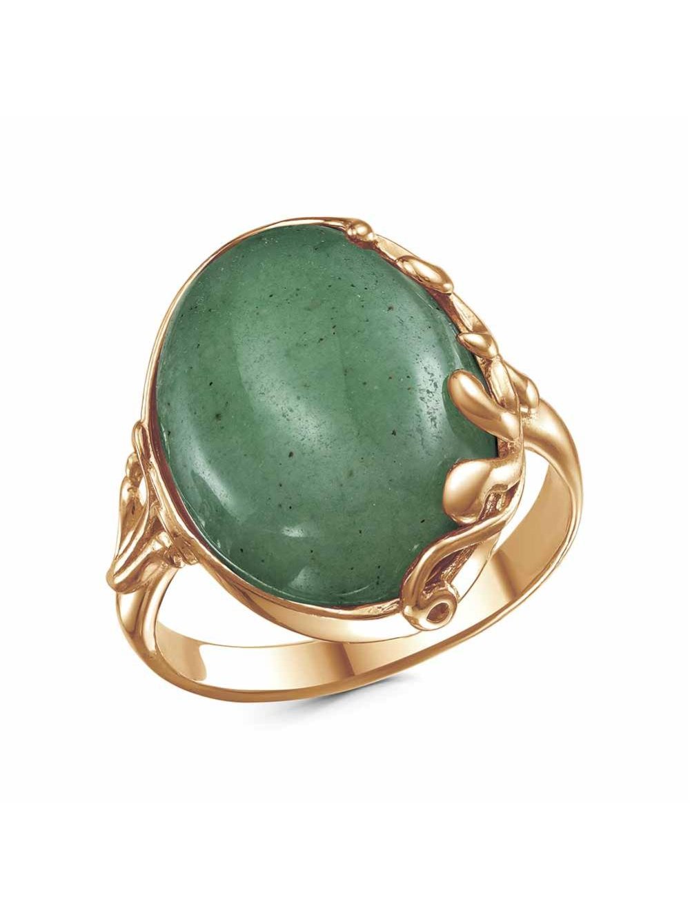 -Кольцо бижутерия, покрытие - золочение, вставка - искусственный нефрит
